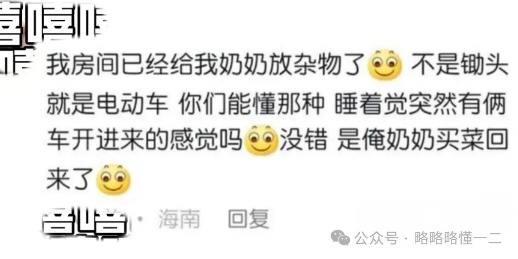 因为他的房间被改成奶奶的储物间了,不是放锄头就是放电动车的,奶奶买菜回来说进就进,大学生放了假想回家睡个好觉,不存在的。