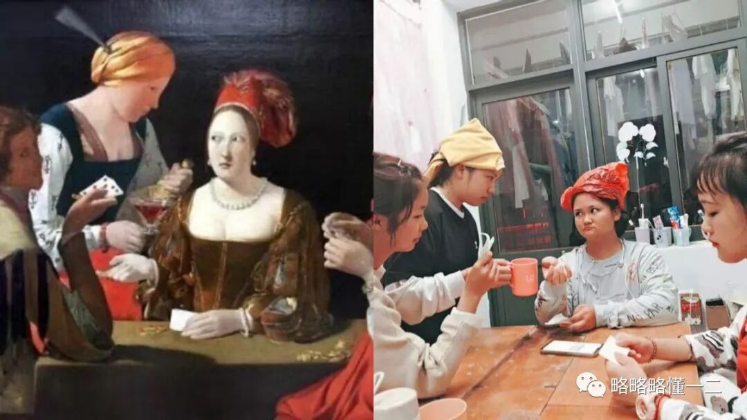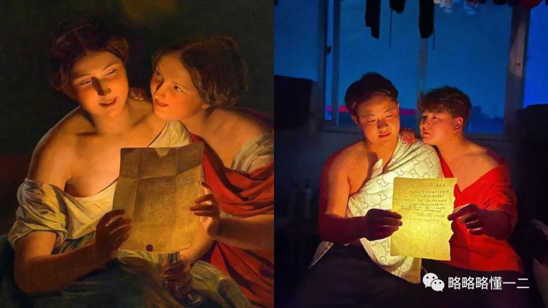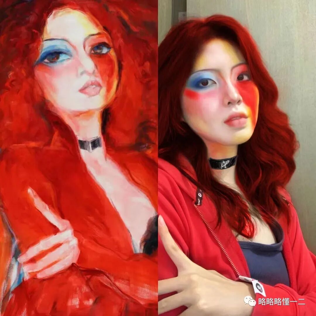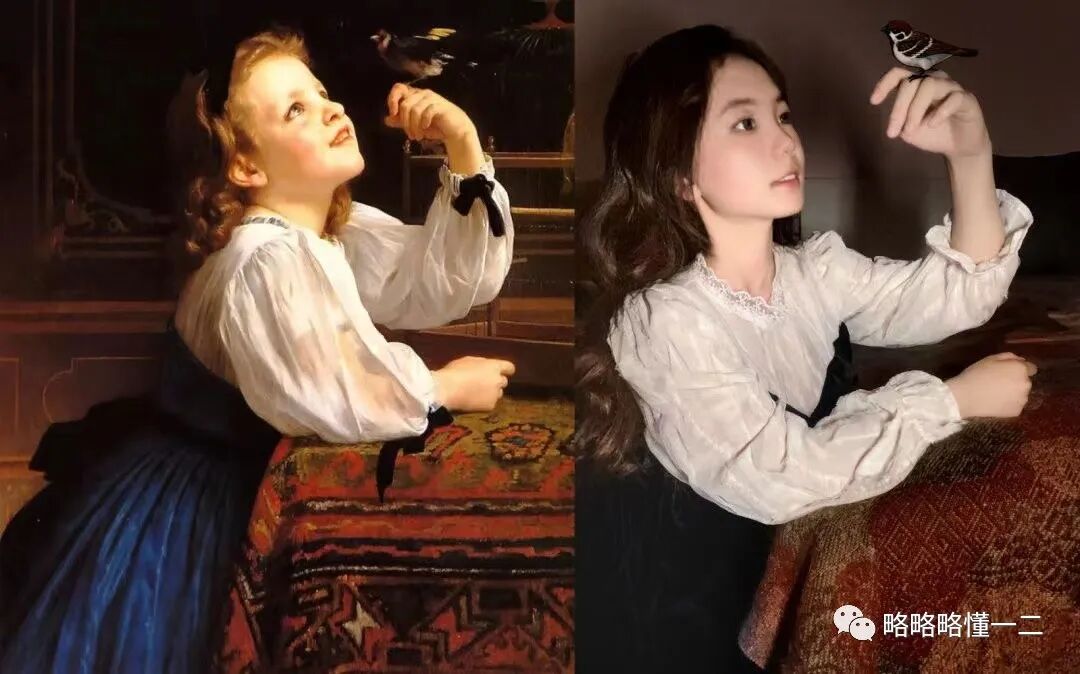 这也是细节直接拉满的一个名画还原了,不仅手部动作还有眼神都十分相像。