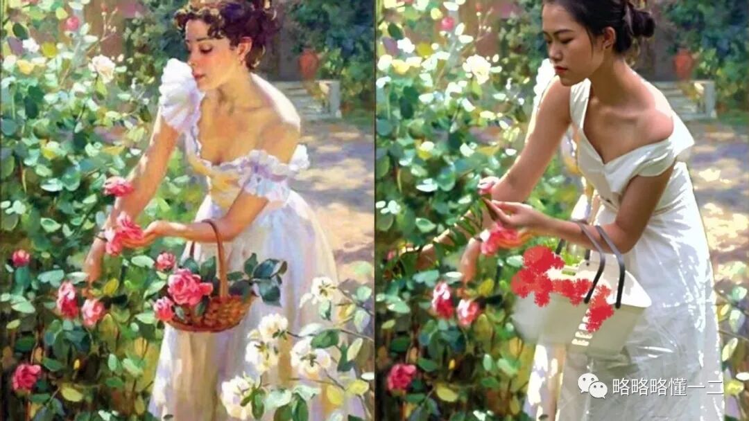 这位小姐姐也是相当不错的,就连背景几乎都做到了一比一的还原,特别是那几朵玫瑰花,细节直接拉满。