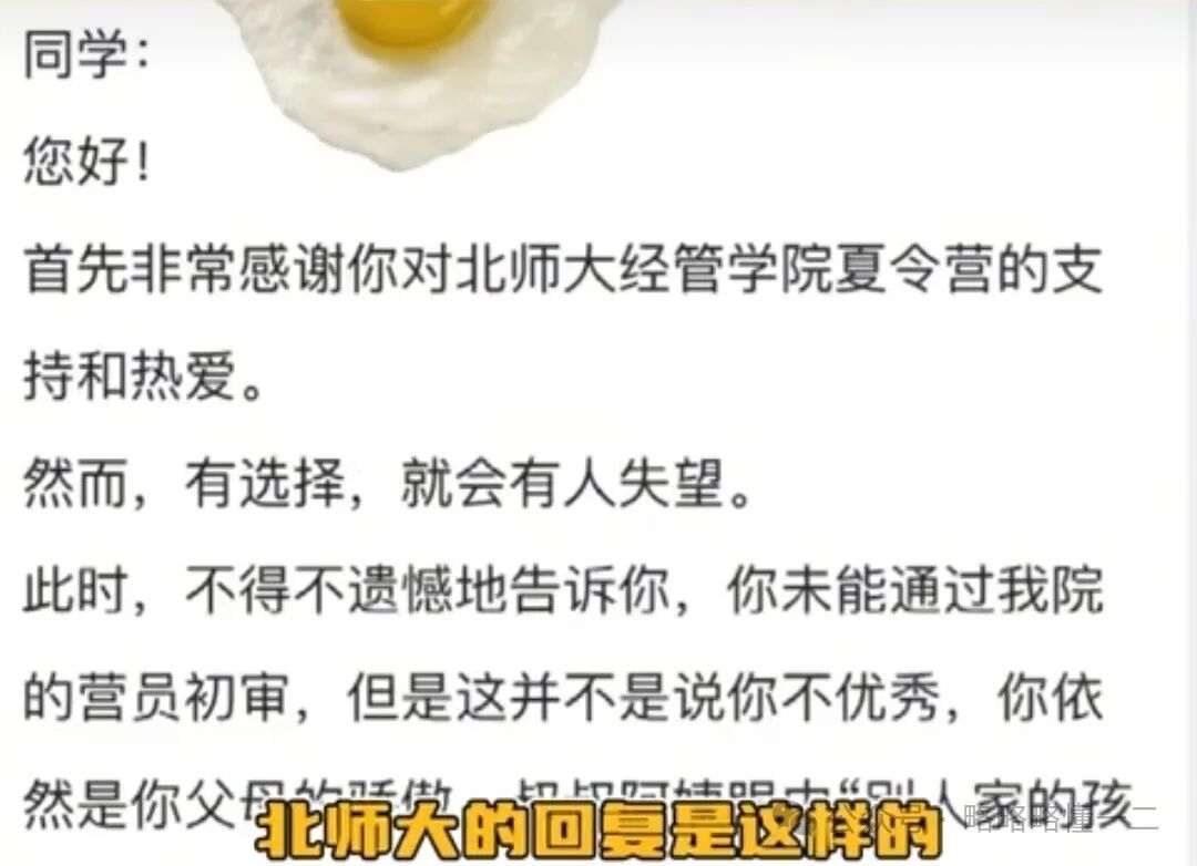 首先北师大的通知是这样的,感谢了学生对北师大夏令营的热爱和支持,还说了一句“有选择,就会有失望”。