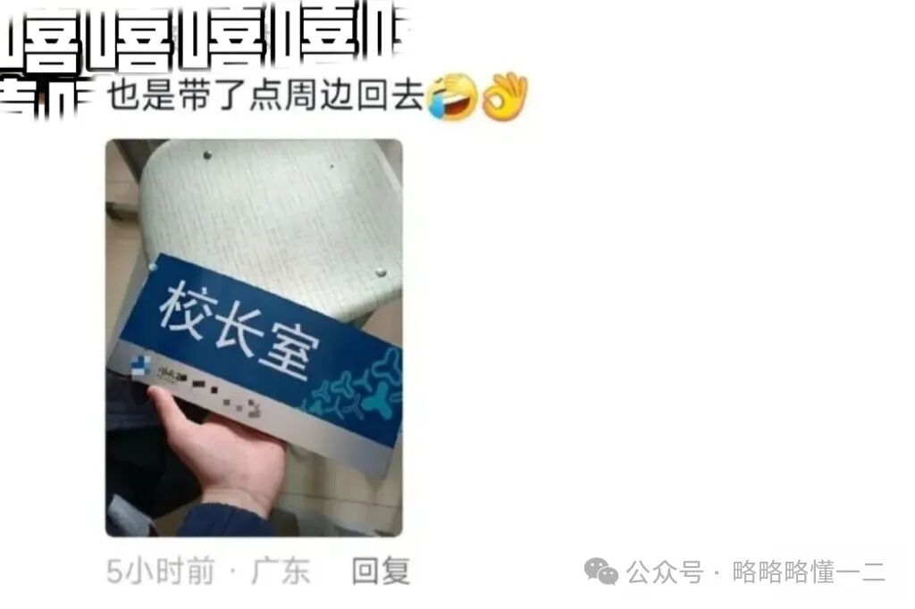 咱就是说大学生毕业,你带一点实用性的东西回家也能够理解,把校长室的门牌带回来做什么?你当然是毕业了,可校长不还要继续在那里办公吗?