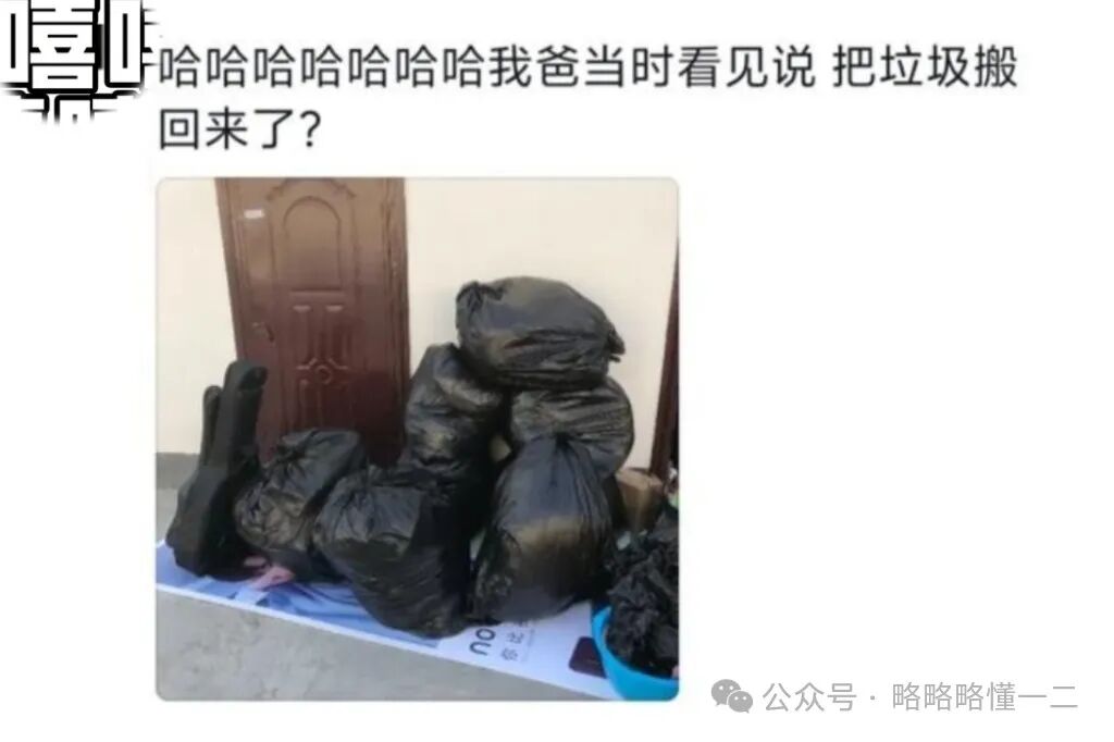 还有大学生打包的风格主打的就是简单粗暴,用黑色大型垃圾袋就把东西给打包回来了,难怪大学生的爸爸会质疑咋还把学校的垃圾搬回来了?