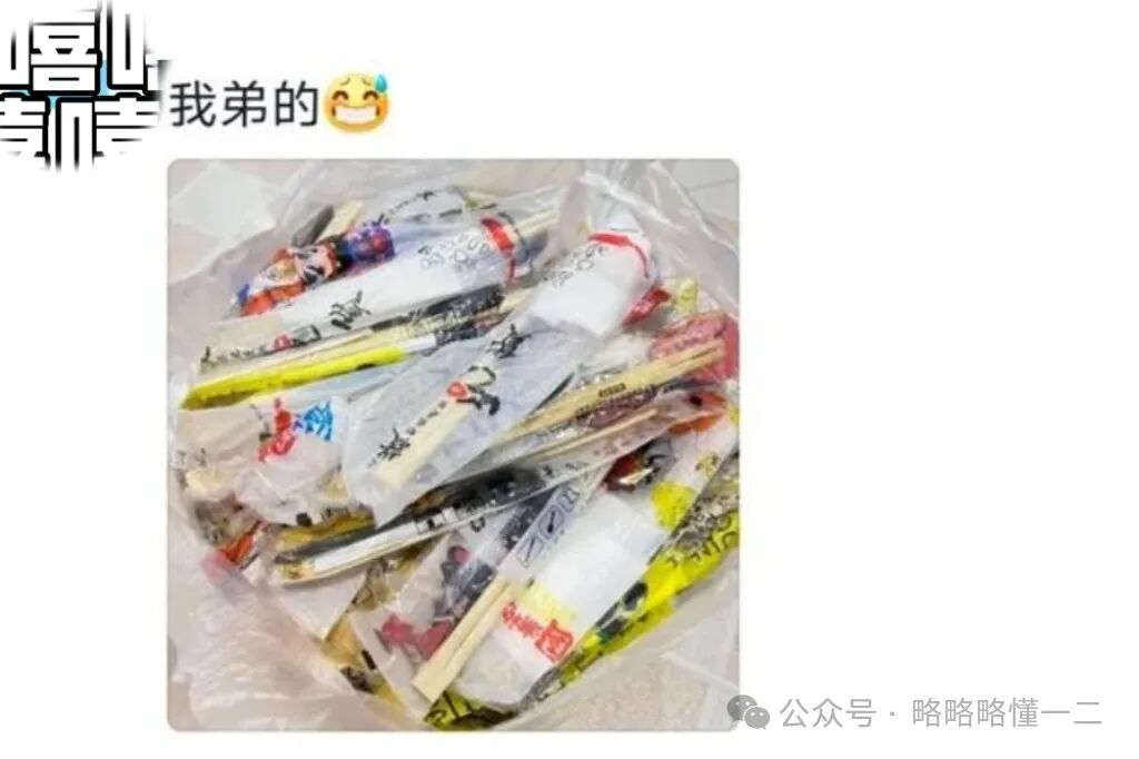 网友弟弟把大学里使用的外卖一次性筷子都给打包回来了,这真的让家长很无语,就是挺难评的一件事。