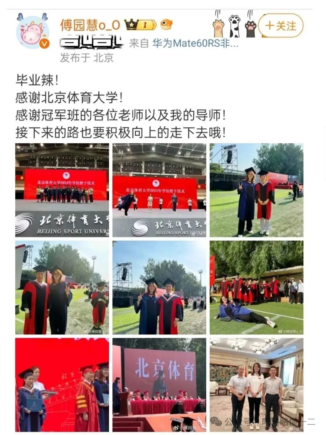 据了解傅园慧本科就读于天津医科大康复与运动医学系,2020年被北京体育大学录取,免试攻读硕士研究生,今年6月份刚刚毕业。