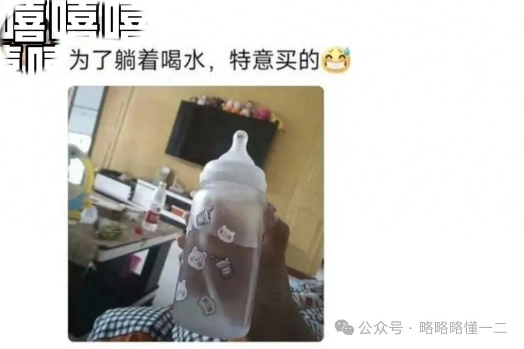 大学生在家为了喝水方便,买了一个巨大的水杯,也可以说是奶瓶吧!还有吸管,这套设备真的太齐全了,一看就是大学生在家主要任务就是躺着。