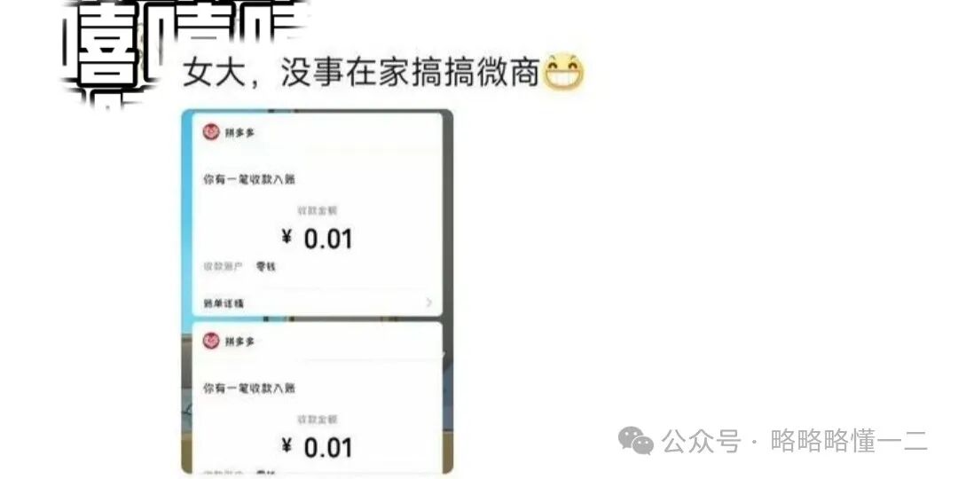 这名女大学生太有意思,说是自己在家做微商,大家理解的微商是不是在网上卖点东西?而大学生是在薅羊毛,拼夕夕1分1分地挣,这什么时候能挣回来一杯奶茶钱呢?