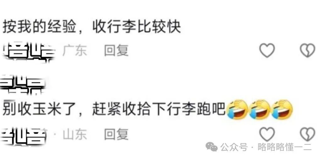 这名大学生还想着补救一下去收玉米,结果被热心的网友们拦下来,网友还总结说根据自己的经验,这个时候收行李要比收玉米快。