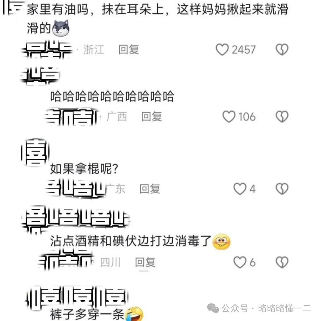 网友问家里有油吗?可以抹在耳朵上,这样妈妈揪耳朵的时候就滑滑的,网友是真的有想象力,那如果妈妈不揪耳朵呢?是揪手臂呢!