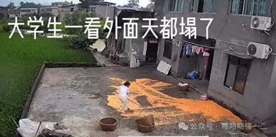 这名大学生放假在家也没有什么事情,家里的大人去做农活去了,想着孩子也不会做什么农活,就在家里看着晒粮食吧。