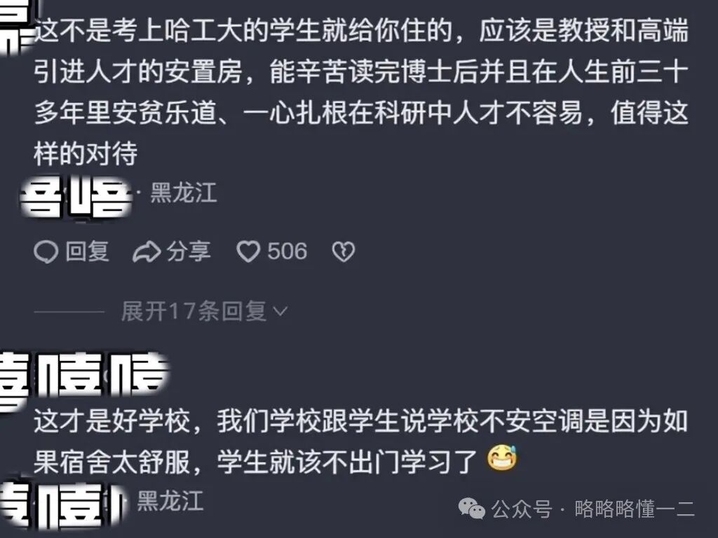 在其他学校给学生解释夏天不安空调是因为寝室环境太舒服的话,学生该不出去学习的时候,哈工大却觉得学生和教授应该满足生活需要,才能安心去学习和科研。