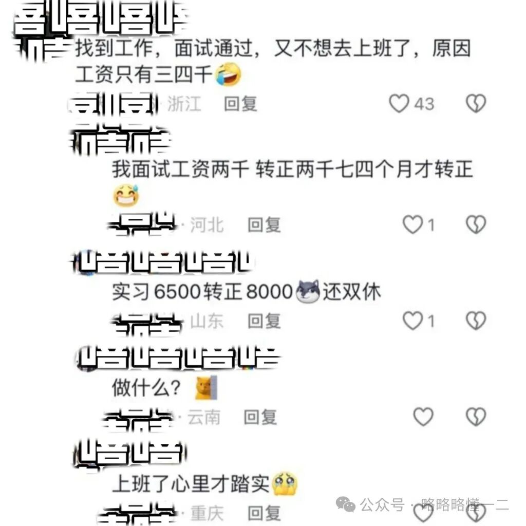 没找到工作前焦虑,找到工作后看到月薪又不想去了,月薪只有三四千,再一看评论区,还有人转正后两千七的。