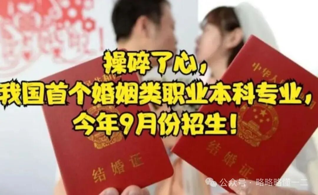 为什么这么说呢?因为我国民政职业大学将开设全国首个婚姻类本科专业,今年一共要招生70名学生。婚姻专业?是的,你没有看错哟!
