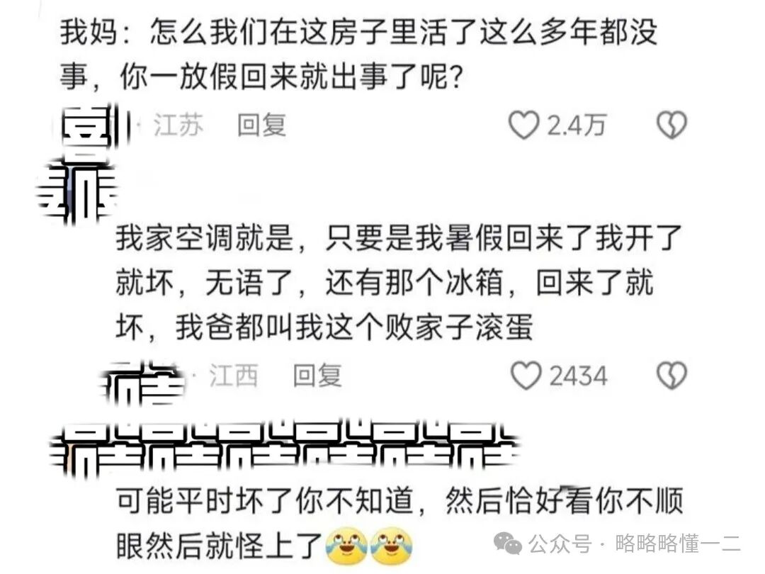 妈妈还挺赶潮流,妈妈也相信“玄学”吗?网友猜妈妈会吐槽大学生在家的时候不是这里塌了,就是那里掉了,妈妈在家那么多年怎么没掉呢?