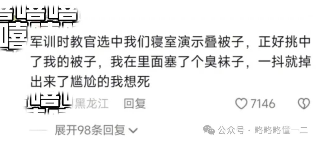 结果这名同学在被子里塞了一双臭袜子,教官一抖掉出来了,这真的很难评,你不愿意军训就说不愿意的,咋还使用“生化武器”攻击教官和同学呢?多少有点过分了。