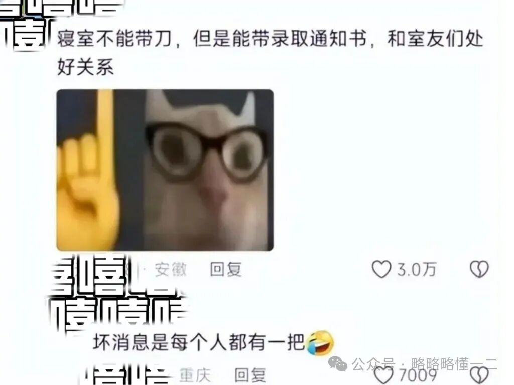 有位家长说家里现在正好缺一把刀,明年叫儿子考上。