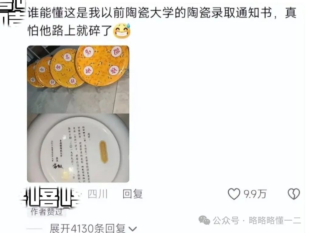 有人晒出之前景德镇陶瓷大学给学生发的陶瓷录取通知书,是真的非常精美,只是担心在路上运输时会损坏。