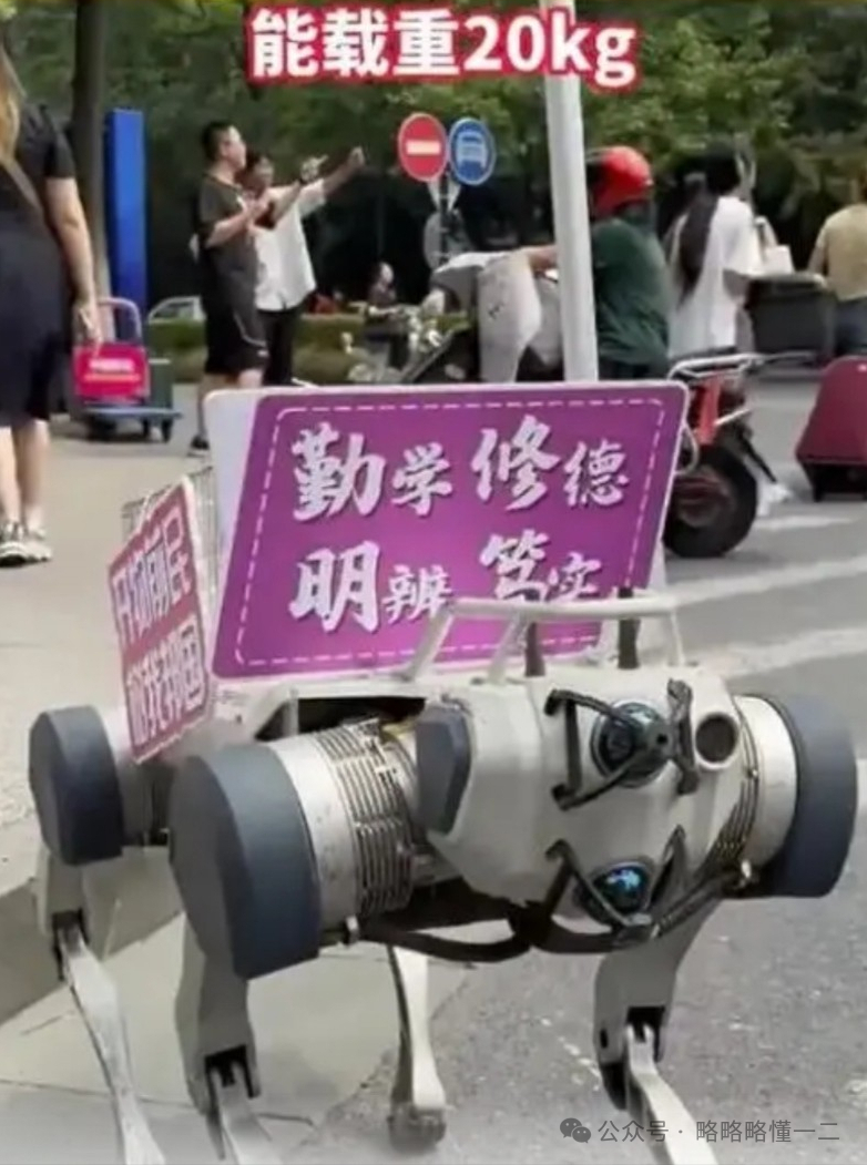 学校安排机器狗帮忙新生拿行李,这回终于不用学长们当苦力了。