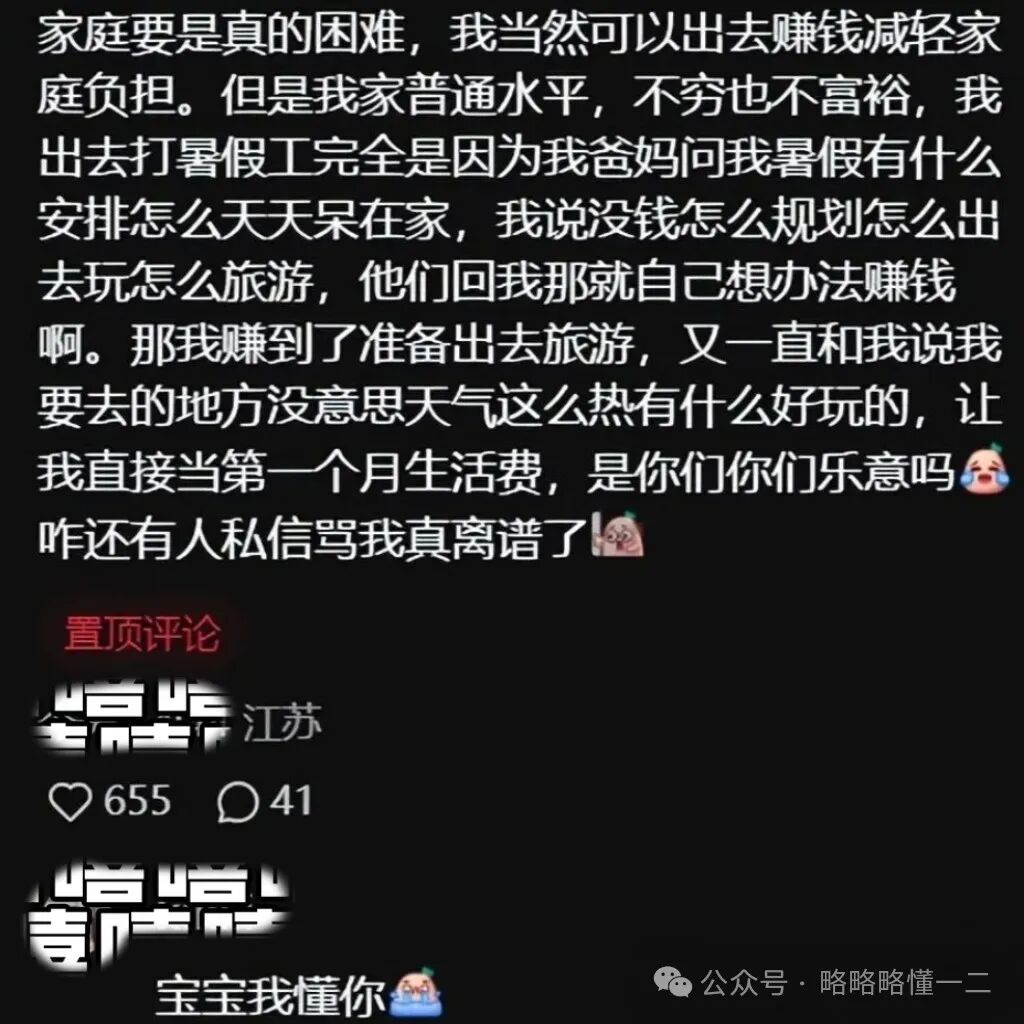 而有名女生高考后出去打工,本以为会按照自己的计划开始美好的假期生活,结果却让她破防了,女生吐槽父母对她很不公平。
