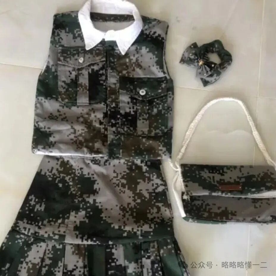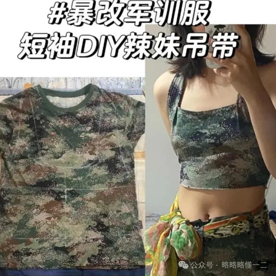 有的女生在军训前把自己的军训服改成了背心、小短裙,还做了包包、发圈,有的同学做了连衣裙,该说不说动手能力挺强的,审美也还可以,只是不太适合在军训服上下功夫。
