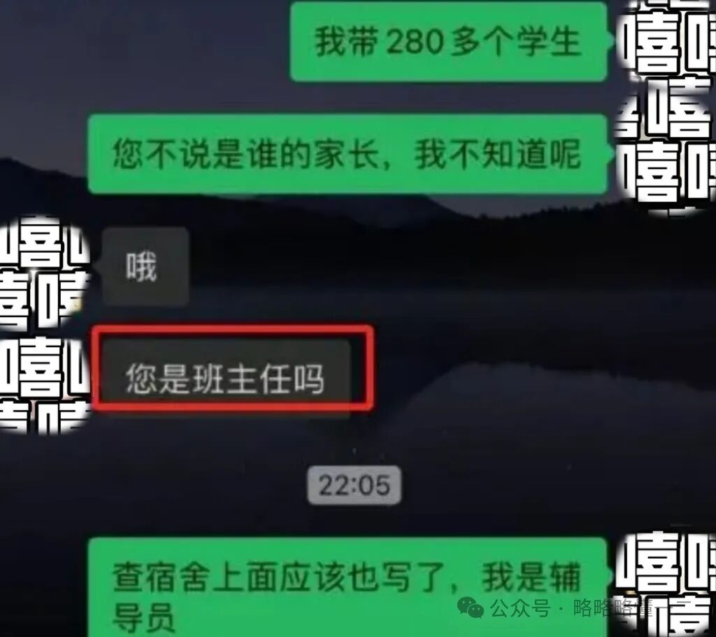 老师又想知道具体是哪名同学的家长,随后家长又问老师是不是班主任,老师回复说宿舍信息上应该写了是辅导员。