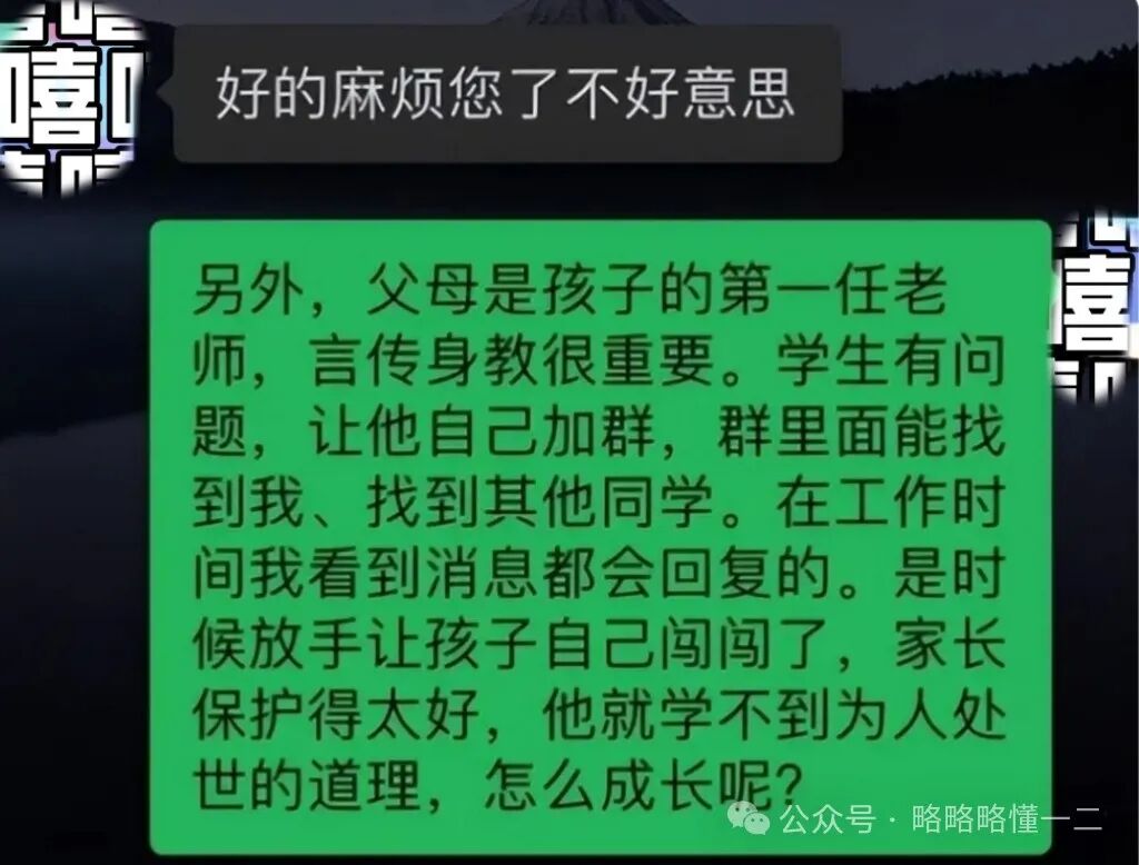 如果辅导员老师挨个回复的话,接下来也就不用工作了,时间全用在回复这名家长身上了,很显然这是不太合理的事情。
