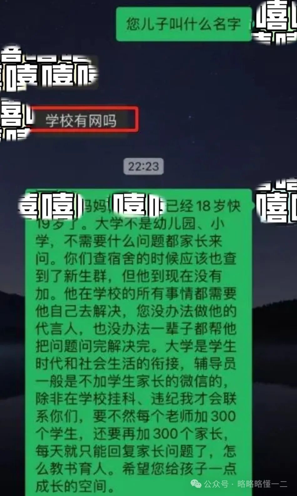 于是辅导员老师给这位家长发了长文,老师说孩子已经是大学生了,并不是幼儿园和小学的学生,不需要什么事情都由家长来问。