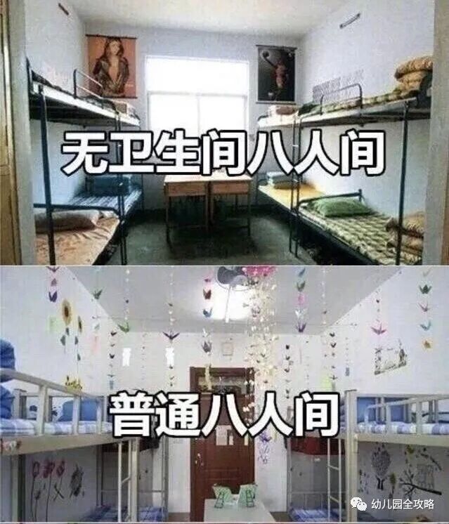 惨的就是八人间有的是没有独立卫生间的,都是一层楼共用澡堂和卫生间,想想也是十分尴尬的。