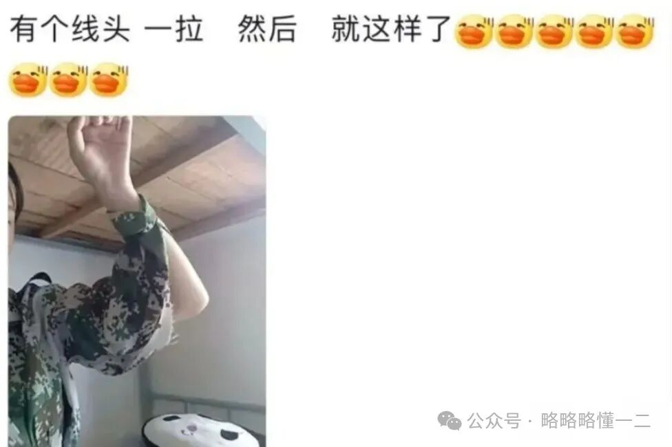 然而,军训还在继续中,临时订一套衣服也来不及了,女生就得委屈一下了,隔着屏幕都能感觉到女生的崩溃。