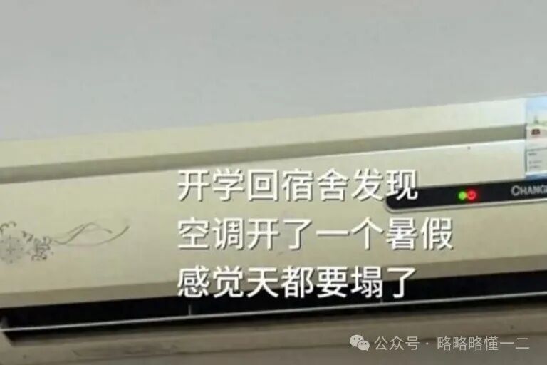 原来空调在寝室开了一假期没有关,能不感觉到凉爽吗?同时感到凉的还有大学生的心。