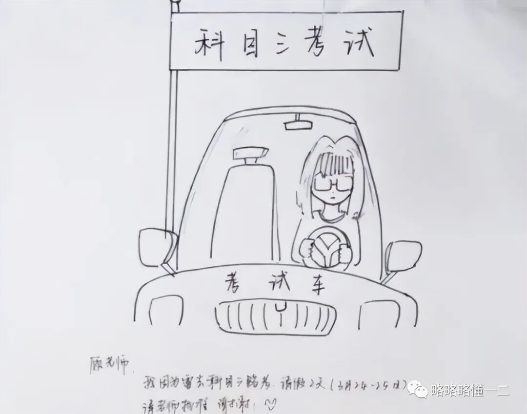 同样的驾考请假,你写文字,人家画画,那就又不一样了。