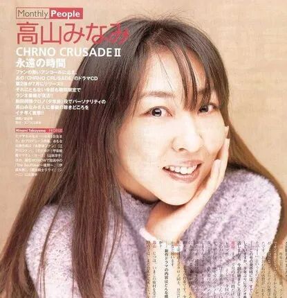 今年高山南老师已经56岁了,但是她依然坚持着自己喜爱的事业,2021年4月1日她参与的电视动漫《通灵王》也在播出,还有现在上映的《名侦探柯南:绯色的子弹》,她不仅在配音事业上有所成就,在歌唱领域也有她的一番作为,她早期与日本歌手永野椎菜合组歌唱组合TWO—MIX,她也发行了很多个人单曲,为配音动漫演唱主题曲,演唱了很多像《ぼくがいる 》,《伝説の暴れん坊》等这样脍炙人口的歌曲。