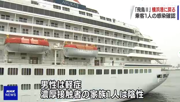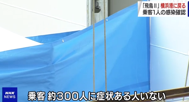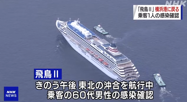 4月30日外部检测结果表明,一位60多岁的男性乘客呈现阳性。随后飞鸟2号决定中止计划,返回横滨港,并于5月1日上午11点40分左右抵达横滨港。