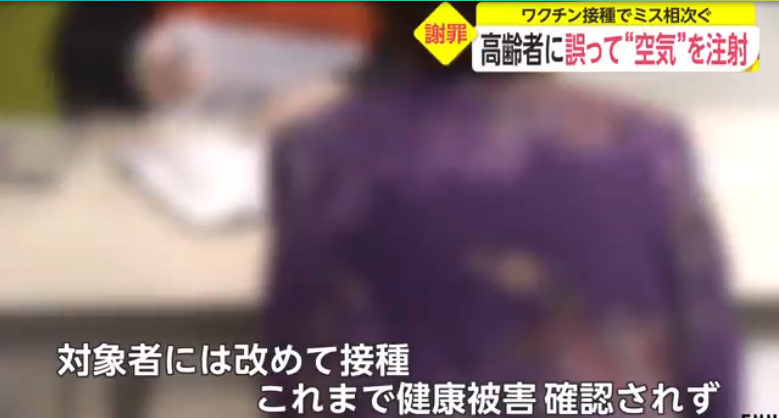 目前表示会对误接种空气的对象重新进行接种,目前没有发现健康问题。