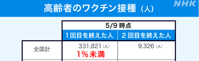 日本从2月份开始陆续给医疗相关人员接种疫苗,一直到4月中旬左右基本接种完毕开始给新冠重症危险较高的高龄人群安排接种,截至5月13日,日本完成第一针接种的人群共有403万人,完成接种第二针的共有157万人。