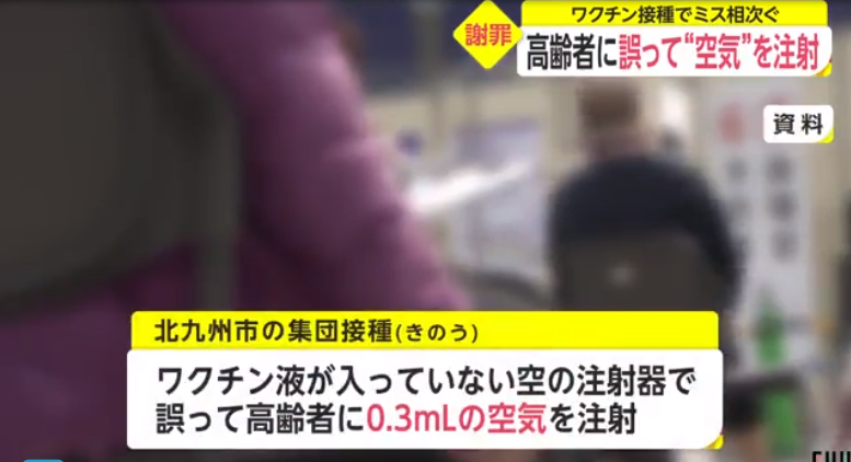 日本新闻报道5月12日,日本北九州市在给高龄人群接种疫苗时,误将没有疫苗的空注射器当成了疫苗注射了,还是最后清点的时候发现有疫苗药液剩余才发现的数量不对的。0.3mL的话是液体还是空的还是可以看出来的呀……