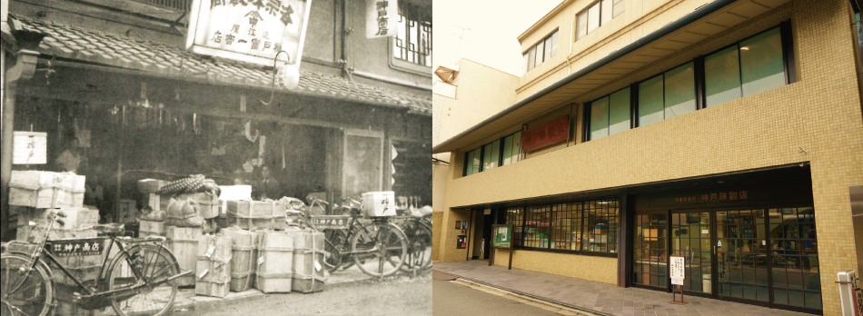 (创业时期的神户珠数店和现在的神户珠数店门店)