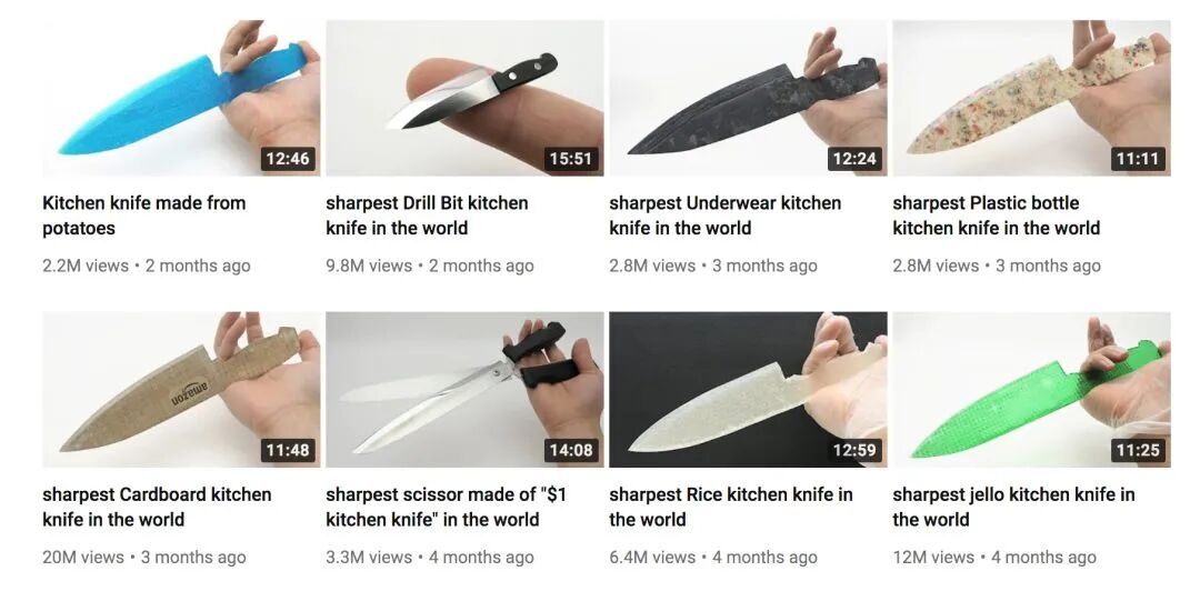 日本有一位专业做刀多年的日本小哥叫Kiwami Japan。他的作品也是擅长把各种物品变成另一种东西与安居智博不同的是,他喜欢把可融化的物品变成锋利的刀具,即使是软软的果冻也能变成一把锋利的刀,最重要的,如果饿了还能把它融化变回Q弹的果冻,是不是很神奇?