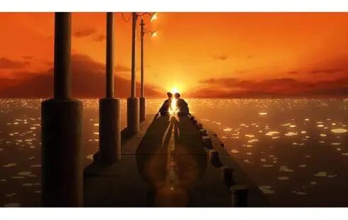 港和日菜子在黄昏的海边互表心意,波光粼粼的海面又浪漫无比。