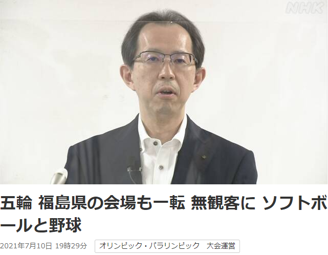 7月8日日本最终决定东京、神奈川、埼玉、千叶1都3县地区的奥运会场将不允许观众入场观看。随后在7月9日晚上,北海道知事宣布北海道札幌会场也将采取无观众形式;7月10日晚,福岛知事随之宣布,福岛会场也将采取无观众形式举办。