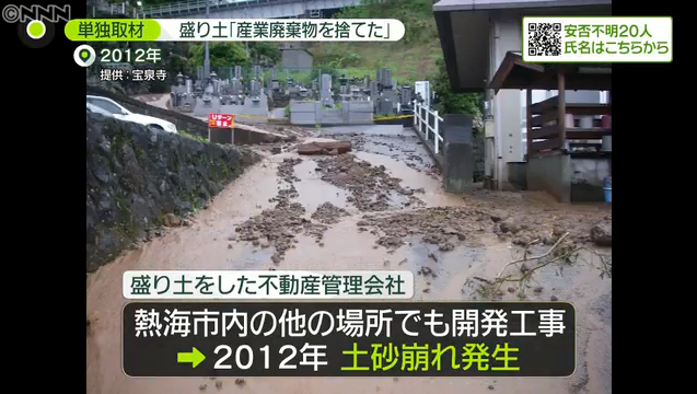 2012年在热海市内其他地区进行开发的时候也曾引起过沙石滑坡,好在附近住户在滑坡前就感觉到了危险。