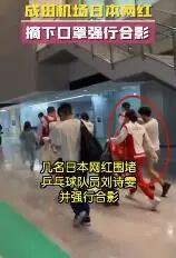 不仅酒店防疫令人担忧,从机场到酒店的途中,防护工作也存在缺失。中国乒乓球队抵达日本时,女单选手刘诗雯被不规范戴口罩的网红要求合影,令网友气愤不已。