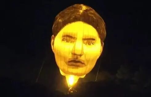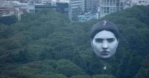 这是一个约20米高的人脸气球,但表情严肃,面色煞白,大白天看了都觉得毛骨悚然。更令人震惊的是,它晚上还能亮!