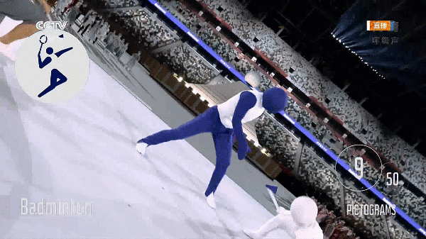 几个小人身穿蓝色、白色衣服完成了2020东京奥运会的50个项目标志表演,全程流畅,还非常萌!