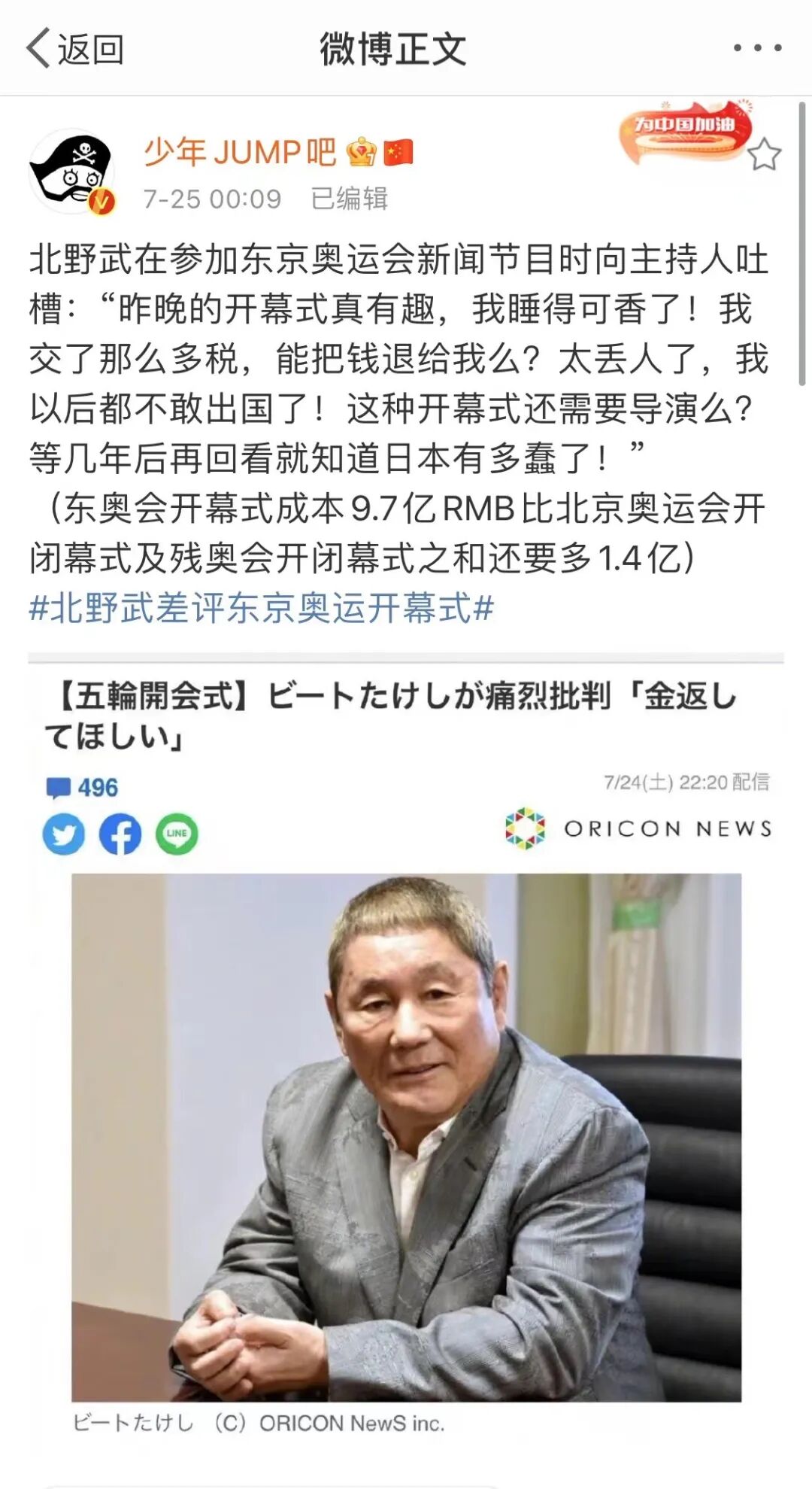 日本网友都在吐槽,日本知名导演北野武都公开表示:看开幕式给我整睡着了,以后没脸出国了……