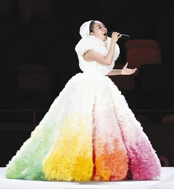 随后伴随着日本国旗升起,MISIA独唱了一曲《君之代》。