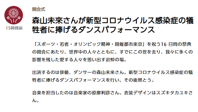 此次奥运会开幕式经历了多次换导演,详细内容初声日语的小编也为大家整理过(可以看这里→开闭幕式导演被辞退!东京奥运还能带给观众怎样的“惊喜”? ),在目前日本疫情依旧严峻的情况下、在全世界各种评论声中,日本还是坚持完成了次此的开幕式。