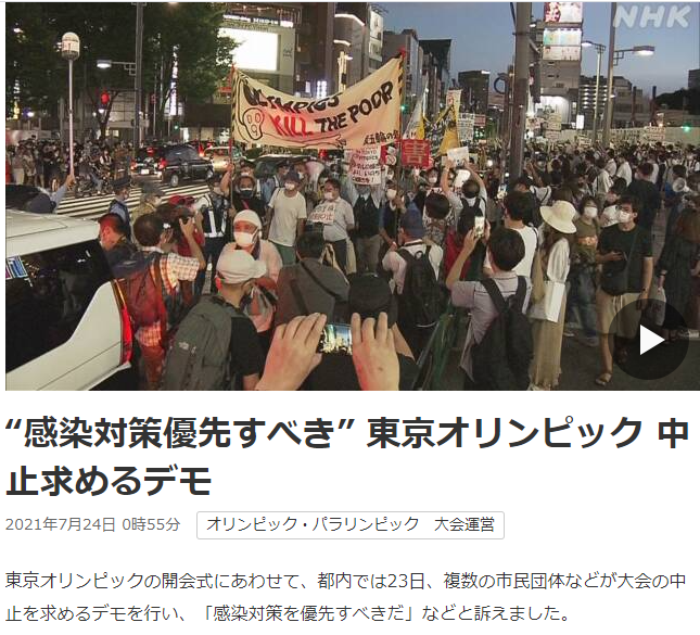 就在开幕式这天,东京都内还有民众组织的游行,要求日本先控制疫情、中断奥运比赛。