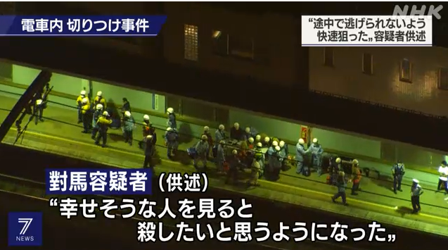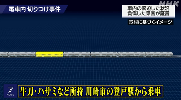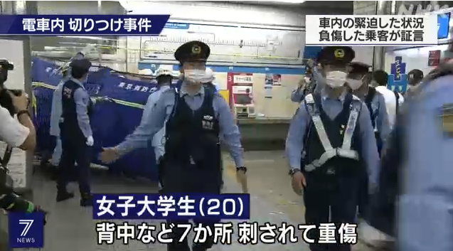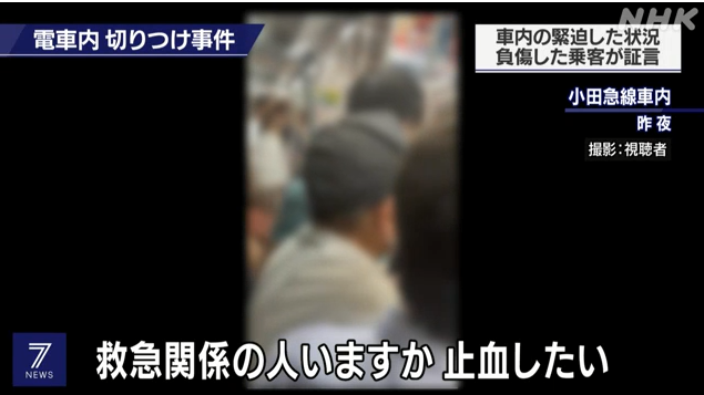 8月6日晚8点半左右,日本警方接到报案,在小田急线电车内有一名男性挥刀刺伤多人。