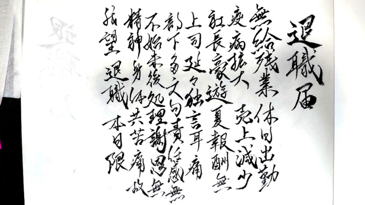 辞职信加班没钱周末上班疫情加重业绩减少社长出游我无报酬上司废话听得头疼下属抱怨没责任感帮擦屁股还没好话身心俱疲痛苦难耐我想辞职仅限本日