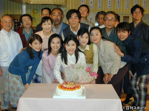 正在和当时NHK电视连续剧「晴朗家族」的剧组一起庆生